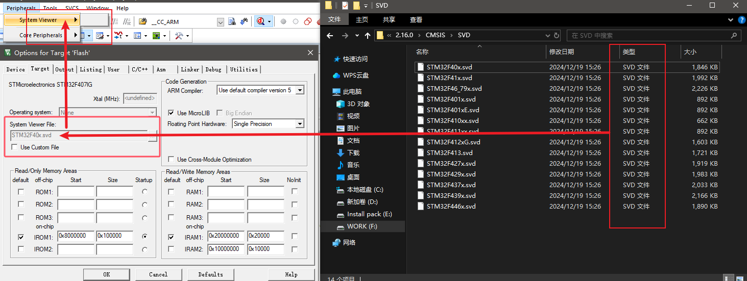 在調試STM32F4系列的單片機時,keil無法通過SVD文件查看外設寄存器,常規的解決方法應該是在keil中添加SFR文件即可,但是ST各個系列的官方pack包中,有的給出了SVD和SFR,但是有的只給了SVD,沒有給SFR,本文將講述,如何生成一個SFR文件,問題場景如圖1所示。