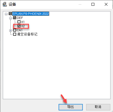 (4)選擇要導出的端子排“-X2”,點擊“導出”。
