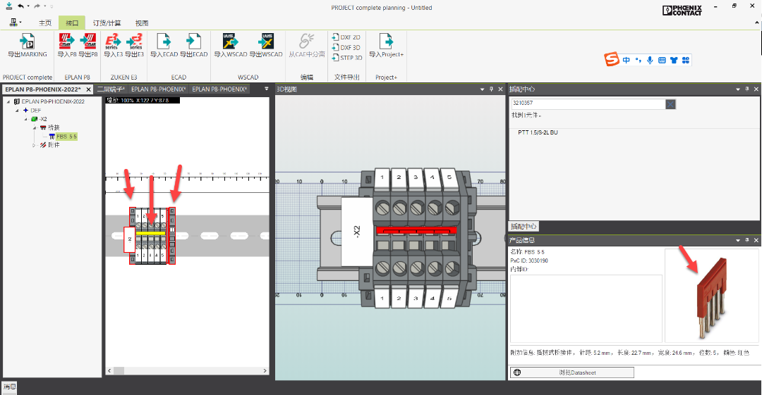 本文描述EPLAN Electric P8 2022 與 PHOENIX PROJECT complete ?交互進行端子選型,特別是在PHOENIX PROJECT complete ?中對端子排及端子附件的細化處理。EPLAN Electric P8 2022是EPLAN 開發的電氣工程設計軟件,它主要用于電氣原理圖的高效設計及工程報表的自動生成。PROJECT complete 是PHOENIX CONTACT針對自己的產品進行開發的,用于配置端子排以及對端子塊、導體、電纜、設備和系統的標記材料進行專業直觀的規劃和標記的軟件。