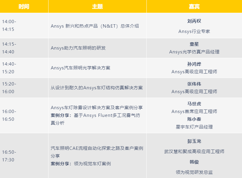 7月19日,Ansys 將重磅推出『Ansys汽車車燈照明行業網絡研討會』,特別邀請行業內相關專家分享汽車照明光學解決方案、車燈結構仿真、車燈除霧設計等熱點主題,以及通過汽車照明行業案例,全面展示Ansys產品組合解決方案如何幫助企業/工程師設計極具變革性的產品。歡迎預約本次網絡研討會,了解更多詳情。