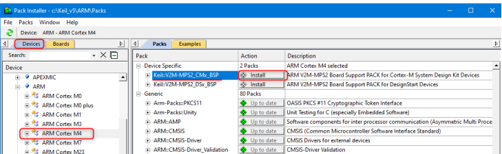 按操作字段中的安裝或更新按鈕以安裝最新版本。例如對于 Arm Cortex-M4: