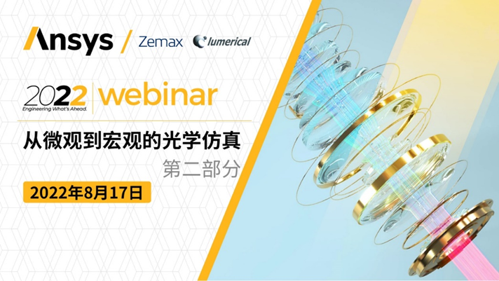 繼7月Zemax和Lumerical工作流程第1部分介紹之后,8月17日,Ansys將繼續(xù)推出【Zemax 和 Lumerical 工作流程第 2 部分 - 從微觀到宏觀的光學(xué)仿真】網(wǎng)絡(luò)研討會,歡迎預(yù)約報名參會!