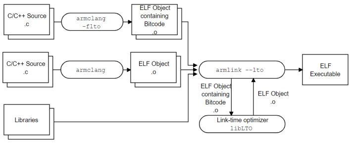 在鏈接時,使用armlink選項--lto為指定的位碼文件啟用 LTO.