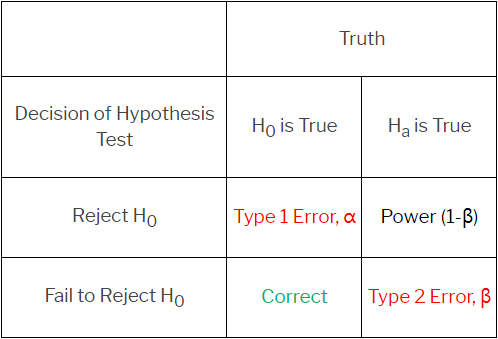 它可以解釋為“檢驗在應(yīng)該拒絕原假設(shè)時拒絕原假設(shè)的能力”。如果原假設(shè)不正確,則有很高概率拒絕原假設(shè)是很有意義的。功效與類型 2 的錯誤相關(guān)(功效 = 1 - 類型 2 錯誤),請見下表。類型 2 錯誤是當備選假設(shè)正確時不拒絕原假設(shè)的概率。因此,確保有足夠高的功效,才能保證類型 2 錯誤較低或“可以接受”。確保檢驗有足夠功效的一種常用方法是收集足夠的數(shù)據(jù),因為功效的計算取決于樣本數(shù)量等因子。樣本數(shù)量越大,功效越高。換言之,未能收集足夠的數(shù)據(jù)將導(dǎo)致低功效和大量類型 2 錯誤。