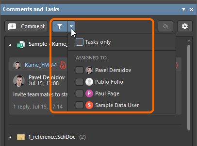 - ASSIGNED TO - 默認禁用所有選項。因此,所有任務/評論均將顯示,并按名稱排序(列表中的第一個條目為當前用戶)。當復選框被啟用時,僅顯示被啟用的條目。