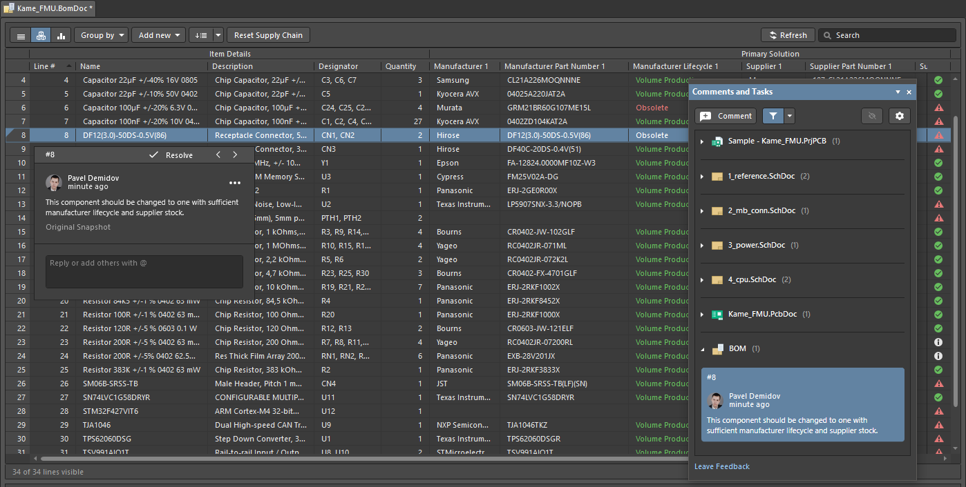 請注意,Altium Designer Standard Subscription不支持任務創建和管理功能。因此,在此級別訪問Altium 365時,該改進功能將不可用,并且Comments面板中的filter選項將與之前版本相同。