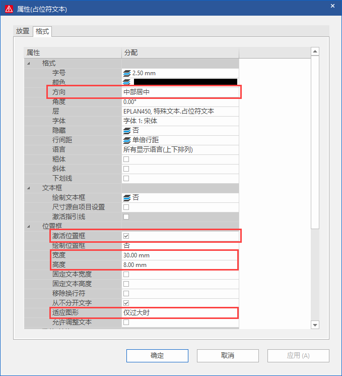 c)?在格式選項(xiàng)卡中,根據(jù)需要設(shè)置其格式,例如方向設(shè)置為中部居中。建議進(jìn)行位置框設(shè)置,用于限定符號圖形的大小。可勾選激活位置框,設(shè)置合適的寬度和高度,適應(yīng)圖形可選擇僅過大時(shí)。這樣如果符號圖形的尺寸超過設(shè)置高度或?qū)挾龋瑫?huì)縮放至位置框的大小中,如果不超過,符號圖形則保持原始大小。