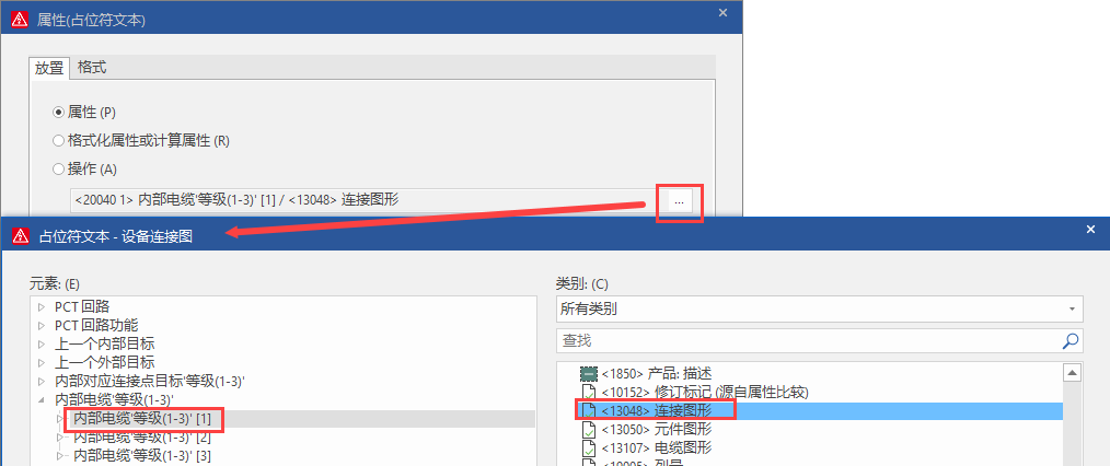 g)?插入占位符文本,在放置選項(xiàng)卡中,選擇內(nèi)部電纜’等級(1-3)’[1]?>?連接圖形。