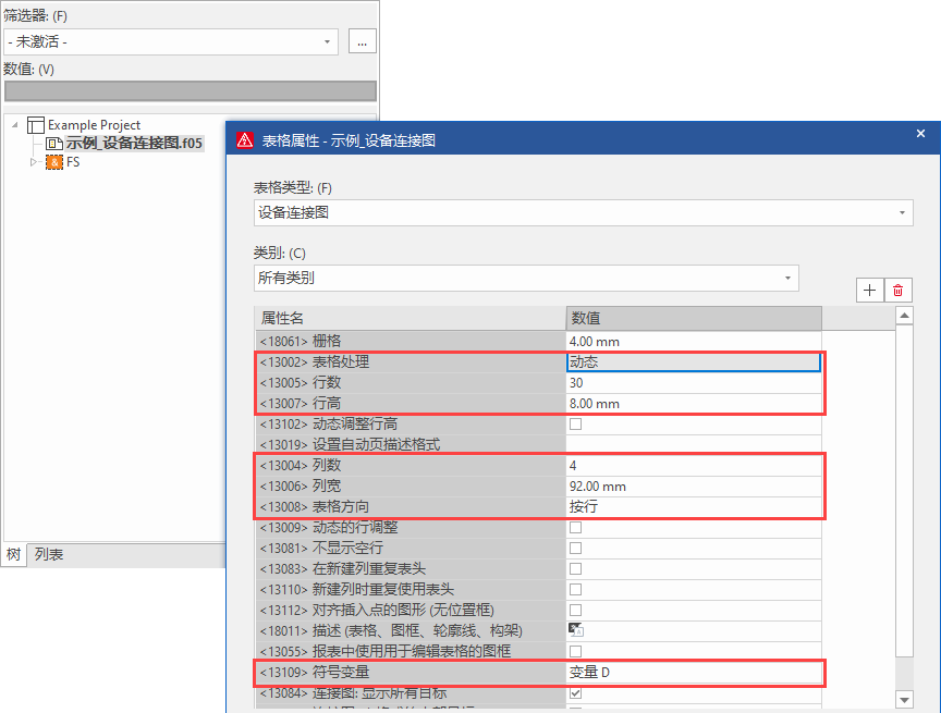 在頁導(dǎo)航器中右鍵該設(shè)備連接圖表格,并單擊屬性,調(diào)出表格屬性窗口。將表格處理設(shè)置為動(dòng)態(tài),其行數(shù)、行高、列數(shù)、列寬、表格方向等參數(shù)根據(jù)實(shí)際制作結(jié)果進(jìn)行調(diào)整,此處不再贅述。符號變量也可以根據(jù)實(shí)際需要顯示的符號變量進(jìn)行選擇。其他屬性也可根據(jù)實(shí)際情況進(jìn)行配置調(diào)整。