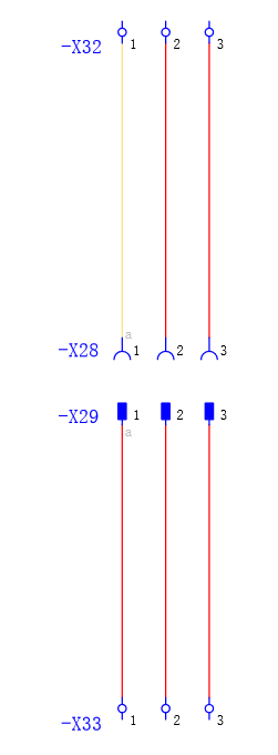 04符號【XBD2】或【XSD2】允許電位通過,中間連接的藍(lán)色線,表示是直接連接,直接連接表示電氣元件之間直接對插,不用導(dǎo)線連接,如下圖。