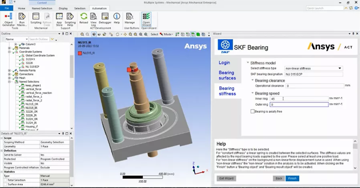 SKF Bearing為嵌入到Ansys Mechanical中使用而設計,可在結構有限元分析(FEA)期間使軸承選擇過程變得簡單和自動化,因此無論初學者還是專家,所有用戶都能輕松進行仿真。