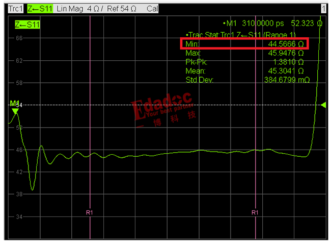 當然我們也是有測試的條件,于是把客戶的板子拿過來測試下,發現也是相同的結果,客戶的測試的確沒有問題,表明這根走線的阻抗的確就是在44歐姆左右。高速先生這個時候就提出了看看客戶的PCB設計文件,看看這根走線是不是因為比較特殊才使得我們板廠的加工出現了偏差,例如走線的線寬和線間距是不是太細或者其他什么加工極限的原因。