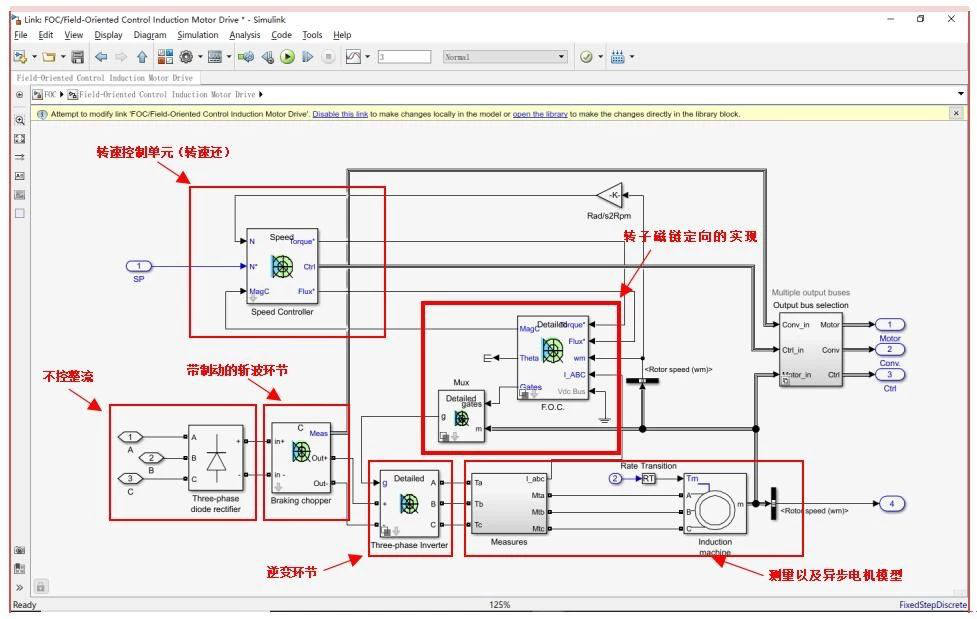 右鍵點(diǎn)擊Field-Oriented Control Induction Motor Drive模塊,按下圖操作可看到此模塊內(nèi)部的具體結(jié)構(gòu)。