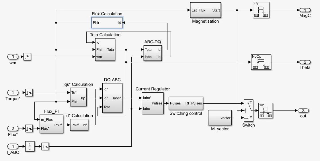 1)、Flux calculation(轉(zhuǎn)子磁鏈ψr計(jì)算模塊)通過定子電流的d軸分量計(jì)算轉(zhuǎn)子磁鏈。