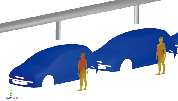 scSTREAM支持對流、傳導和輻射這三類傳熱方式的仿真。其中輻射可模擬擴散、反射、折射等多種現象。利用經緯度、時間、方位角可基于內置的數據庫自動化計算陽光輻射強度。通過內置的函數,可對熱仿真結果中的PMV 、SET、WBGT等熱舒適性參數進行快速獲取。