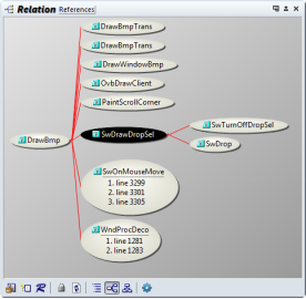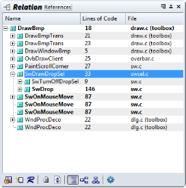 Relation Window 是 Source Insight 的一項創新,可顯示函數/符號之間的相互關系。 它在自己的面板窗口中在后臺運行,并跟蹤您選擇的符號。 它可以顯示類層次結構、調用樹、引用樹等。