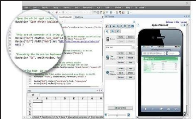 圖 2. 使用相同的UFT 自動化技術進行真實的移動設備測試。