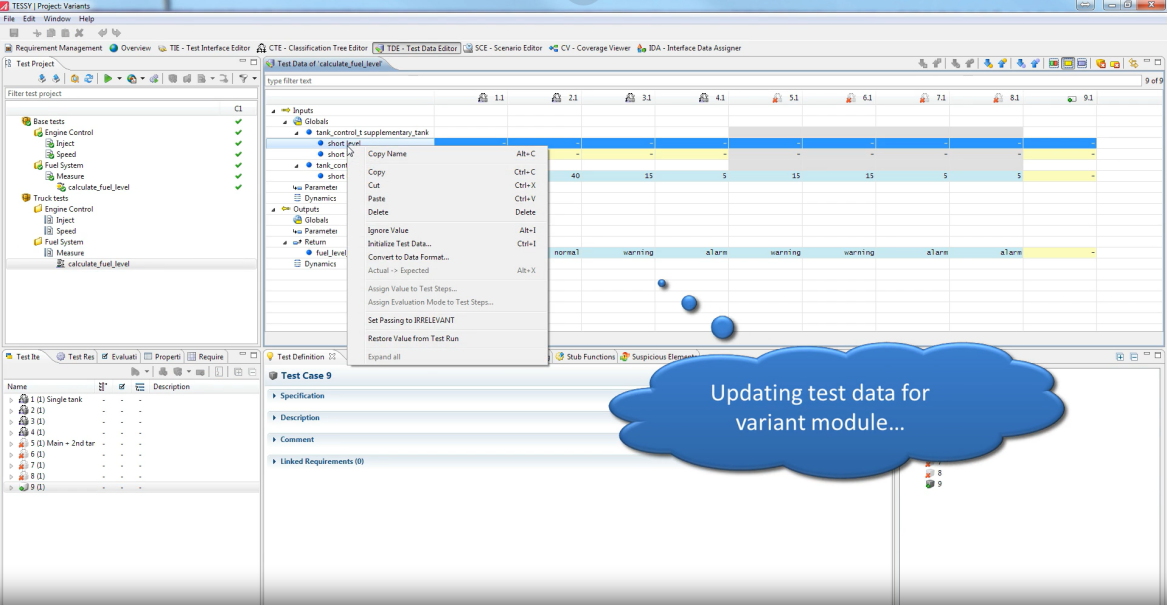 由于 CTE 集成在 TESSY 中,因此可以直接在 CTE 中輕松設置 TESSY 測試過程中所需的值(例如輸入/輸出)。也可以獨立安裝 CTE。