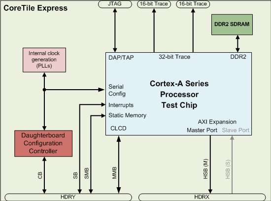 處理器子板 Express 板與Versatile產(chǎn)品系列中的前代產(chǎn)品的不同之處在于,其內(nèi)存和 LCD 控制器等高帶寬外設(shè)是與 ARM 處理器一起在測試芯片中實現(xiàn)的。這會顯示提升性能,使系統(tǒng)更適合進行軟件基準測試并完全能運行Debian Linux等桌面操作系統(tǒng)。