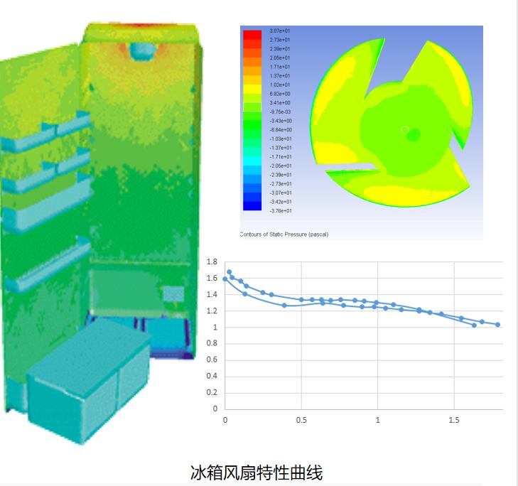· 冰箱風扇性能分析 以冰箱為研究對象,使用軟件ANSYS Fluent,分析了冰箱的溫度分布情況,同時對風扇的結構及參數進行了優化分析,獲得了達到冰箱溫度指標的最優風扇行性能參數。