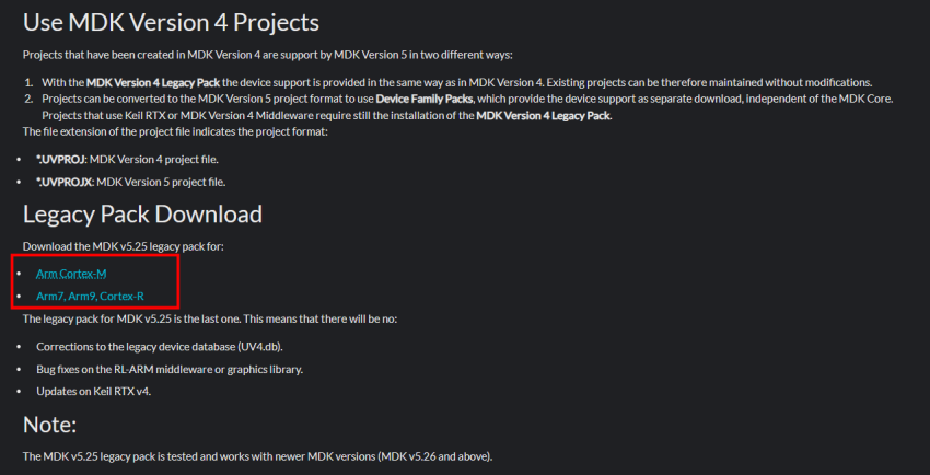 2、點(diǎn)擊【Install Legacy Support】進(jìn)入下載網(wǎng)址:μVision User's Guide (arm.com)