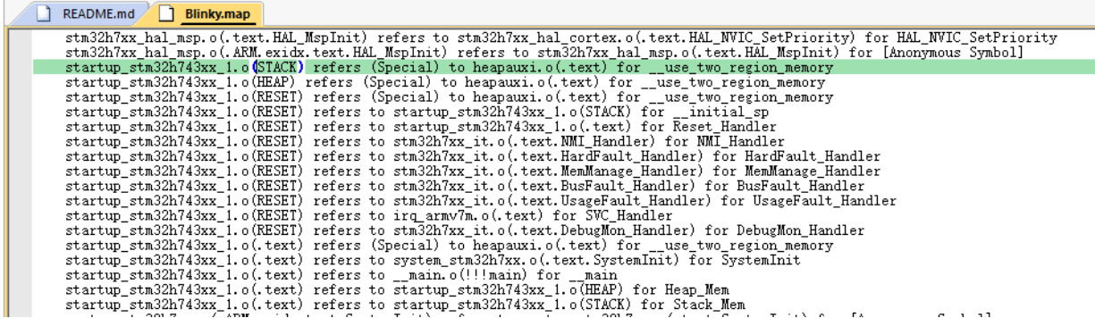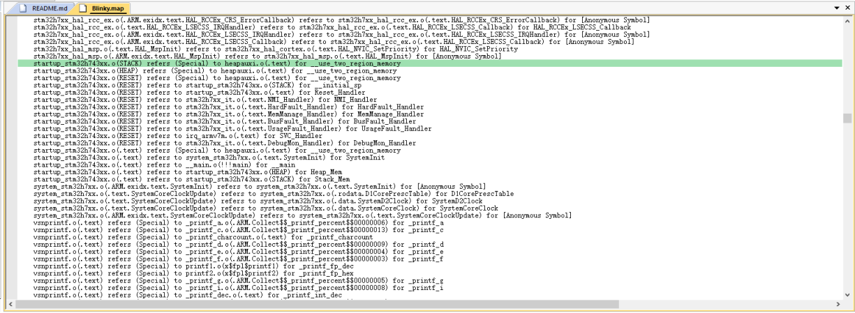 5 查看 map 文件顯示startup_stm32h743xx.o。