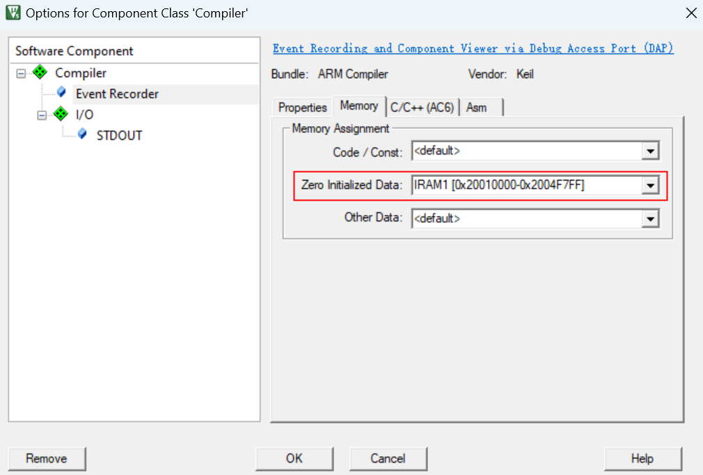 在實現KeiL MDk的EventRecorder功能時,進入調試模式時,提示“Warning: Event Recorder not located in uninitialized memory!”的警告信息,如圖2-1所示: