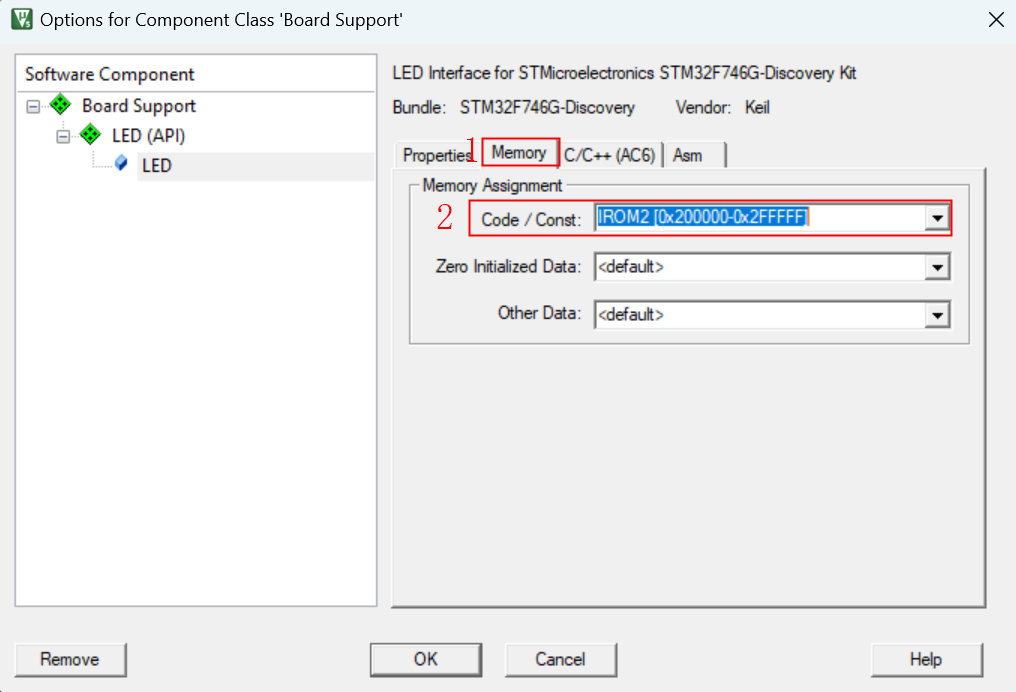 2)在彈出的窗體中,選擇“Memory”,在“Code/Const”中選擇存儲的Flash的地址,如圖4-2所示: