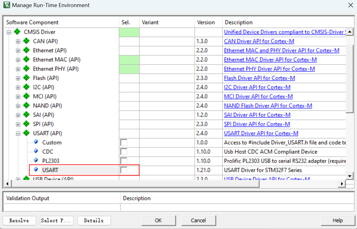 1)、打開工程的"Manage Run-Time Environment"窗口,根據(jù)錯(cuò)誤提示,去掉USART組件,如圖4-1所示: