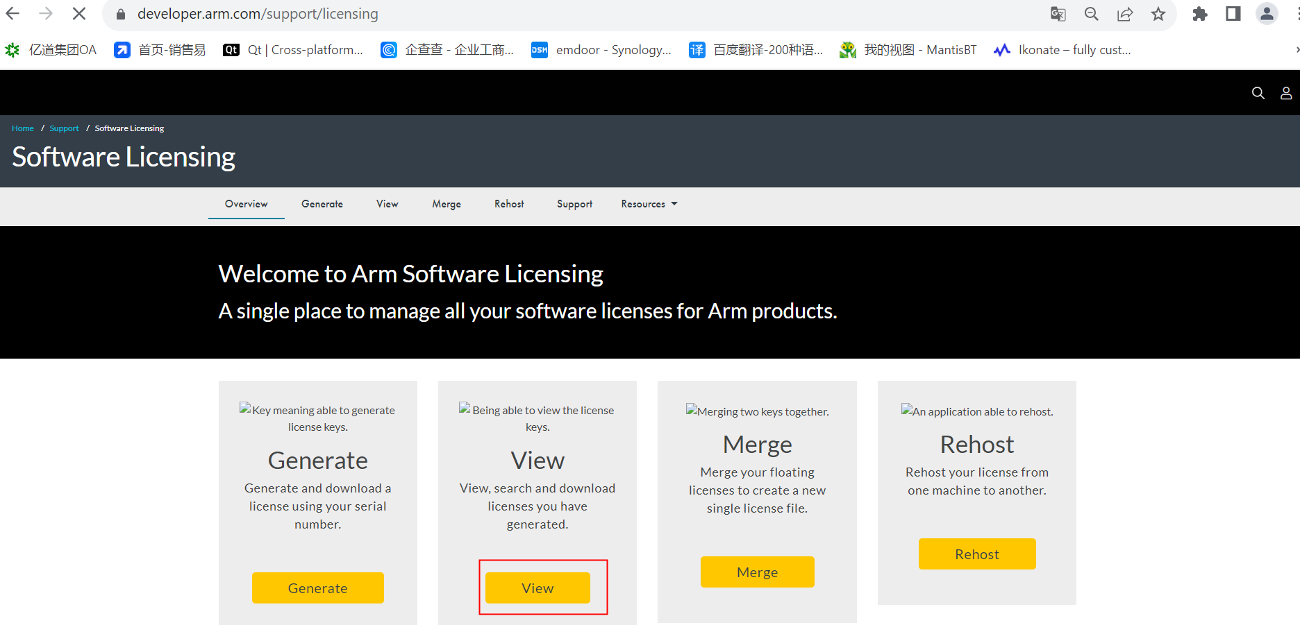 2)、如果原始的License文件沒(méi)有保存,用注冊(cè)過(guò)的ARM賬號(hào),登錄ARM的官網(wǎng):https://developer.arm.com/support/licensing,如圖4-1所示: