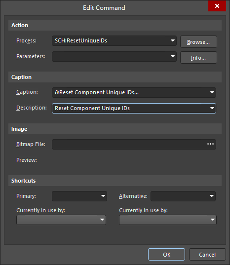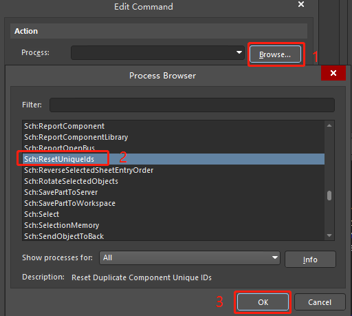 4 在 Process 欄中填入SCH:ResetUniqueIDs。