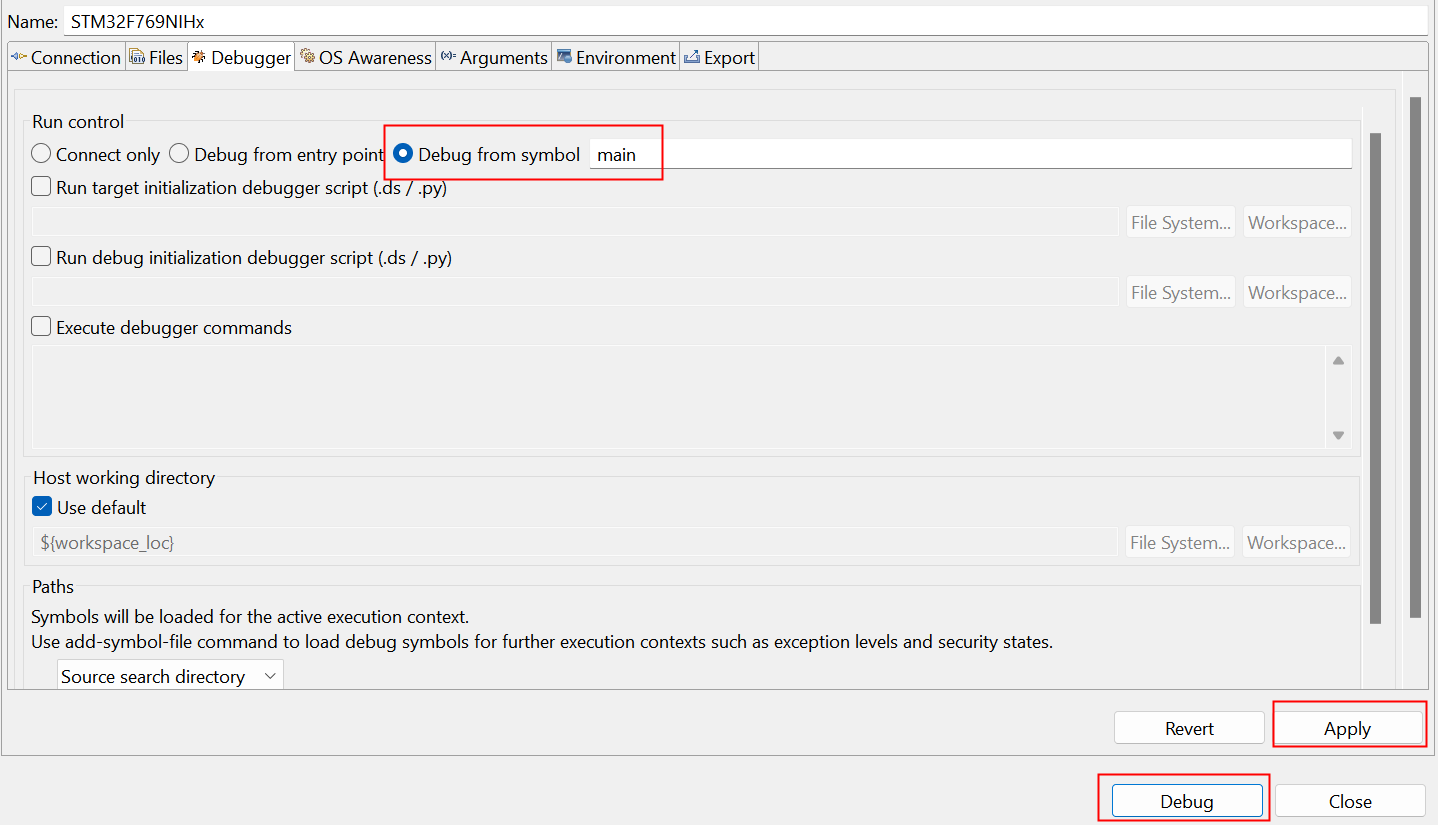 2)、設(shè)置好調(diào)試入口:main, 如圖4-2所示: