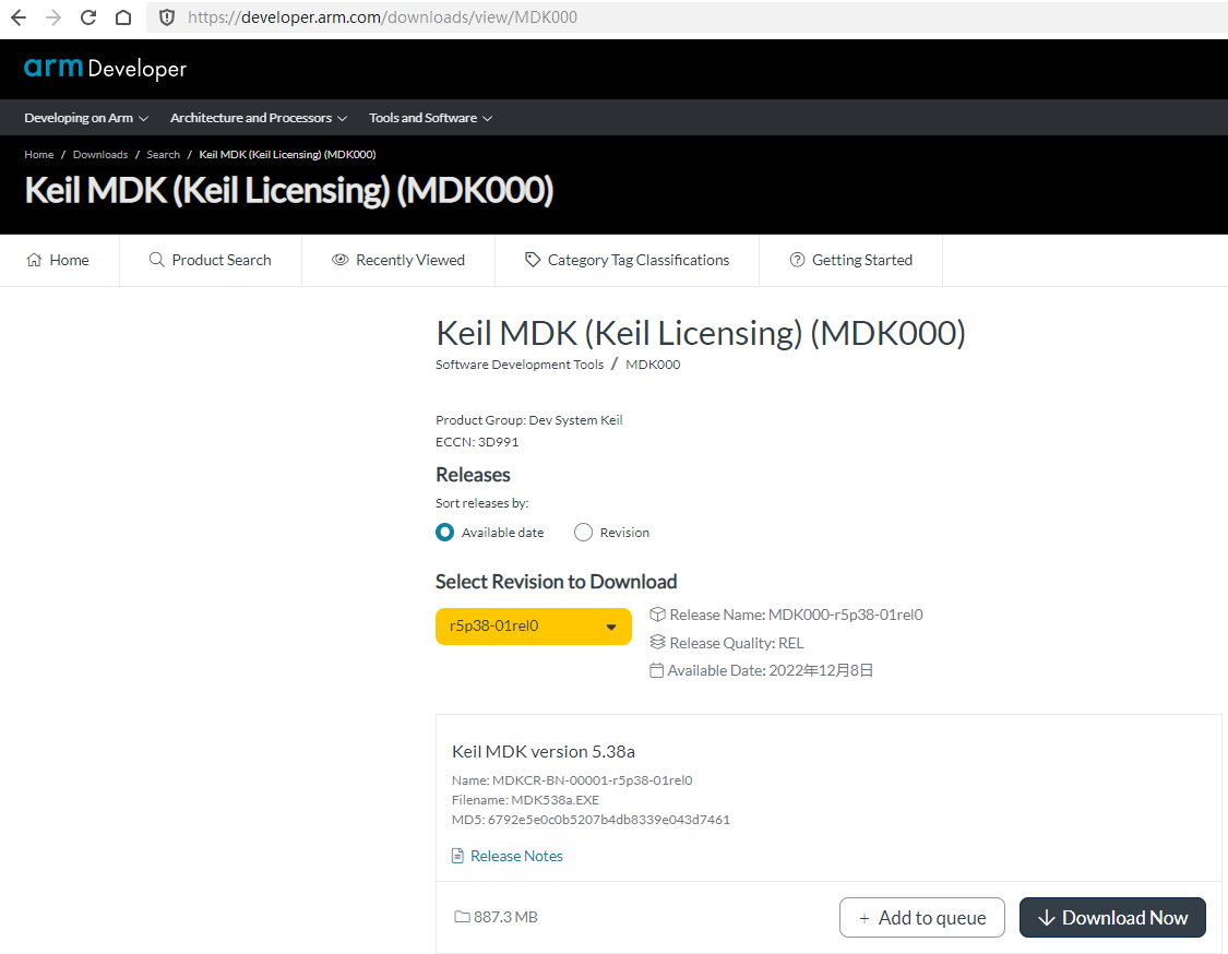 3 同時可以在 ARM 的網址:https://developer.arm.com/downloads/view/MDK000來下載 MDK 軟件;