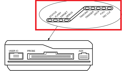 DStream指示燈上面一共有9個(gè)指示燈(如圖1)。分別為調(diào)試特性的指示燈和Trace特性的指示燈。