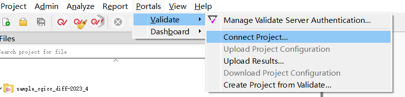 4、登錄QAC,菜單欄選擇Portals》Validate》Connect Project