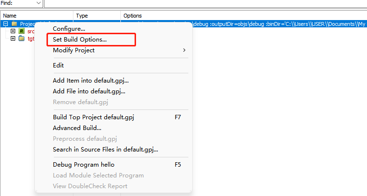 1、打開工程的build option窗口,我們需要設置一個構建選項(如圖4-1)。