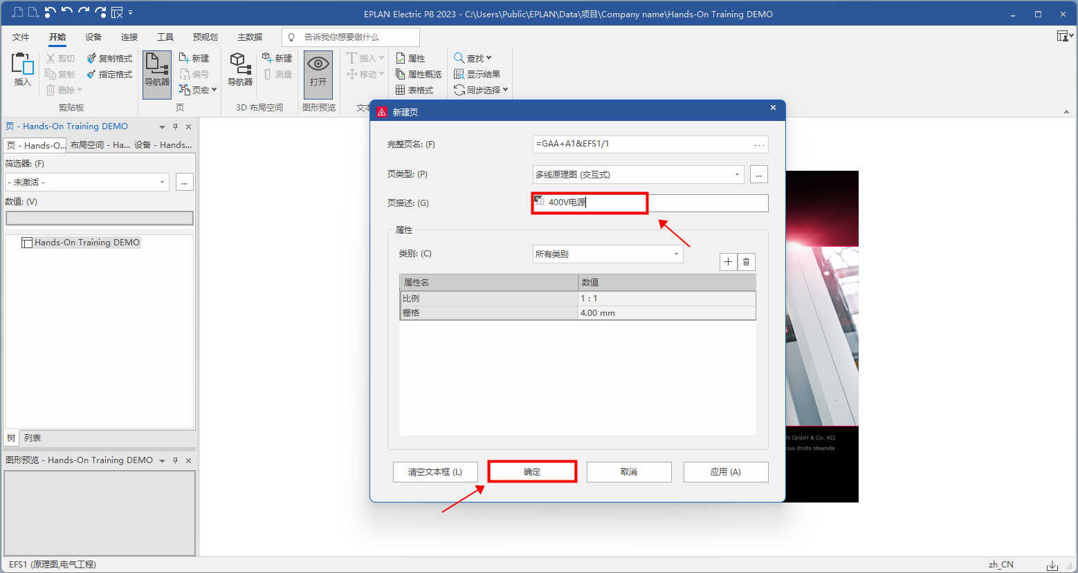 選擇頁類型:安裝板布局;添加頁描述,這里需要修改圖紙比例進行放大,點擊【確定】