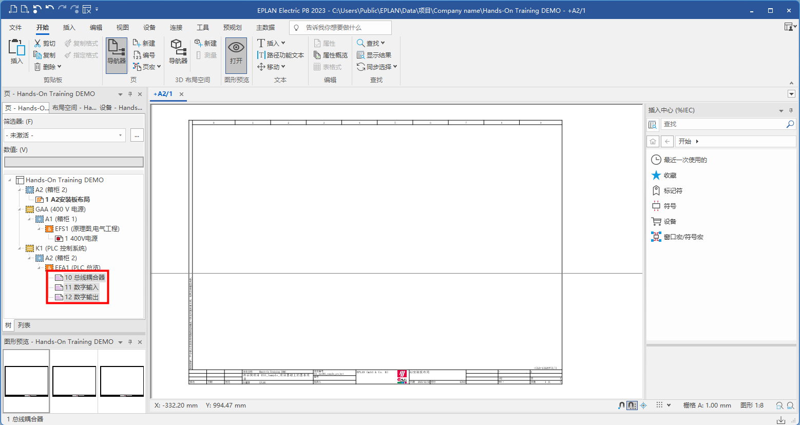 創(chuàng)建完成,打開圖紙頁,可以看到圖框右下角的圖紙結構信息;
