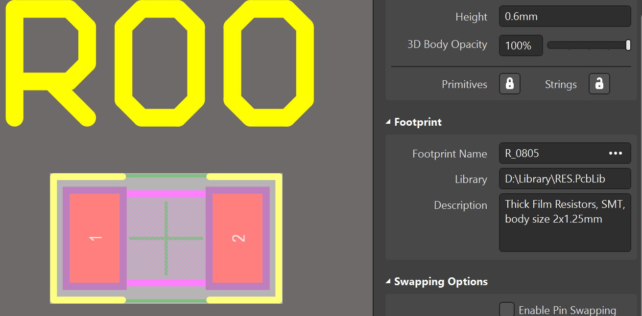 設計中對某一個元器件的封裝進行更換(原理圖符號關聯的封裝由封裝A更改為封裝B)之后執行update PCB,原封裝無法被新封裝替換。見圖1,R00的封裝由0805更改為1206,原理圖中查看該元件,封裝已被替換,但是update PCB后,R00的封裝依然是0805,見圖2。