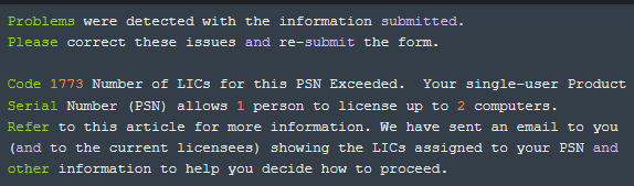 超授權(quán)情況:許可協(xié)議允許單用戶產(chǎn)品序列號 (PSN) 最多可在兩臺計算機上獲得許可,并且僅供一個用戶使用。