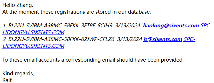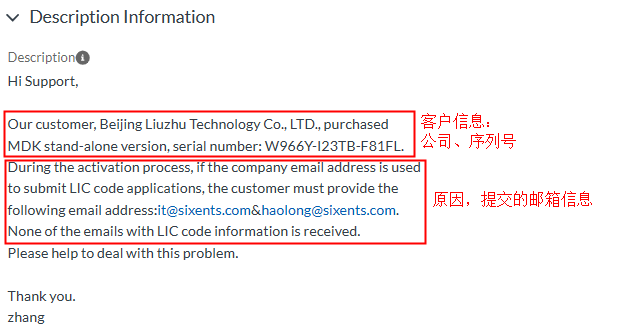 原廠會給到包含 LIC 碼及對應(yīng)郵箱提交的信息。僅提供一個 LIC 信息給到用戶。