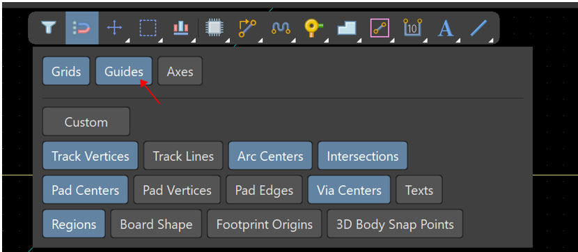 對于不在柵格上的參考點和參考線,需要在捕捉對象中激活Guides之后,才能夠在使用時自動捕捉。