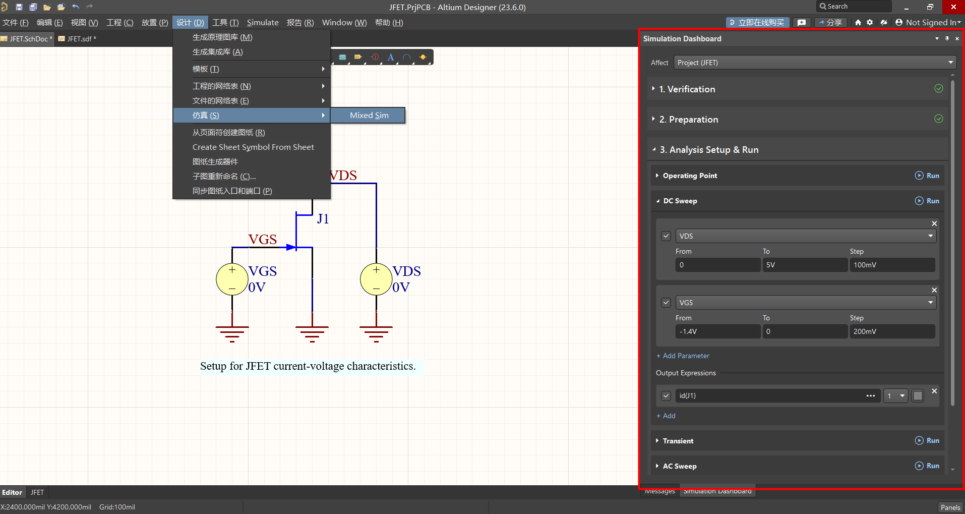 改版后軟件打開仿真功能為屬性面板形式,在屬性面板中會有一個仿真驗證過程,第一步檢查元器件是否有仿真模型;第二步檢查電路激勵;第三步選擇仿真模式進(jìn)行設(shè)置,對應(yīng)的仿真模式【Run】即可運行。