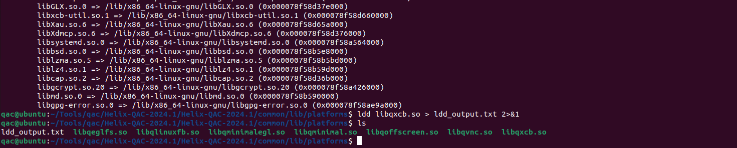 2)、運(yùn)行<ldd libqxcb.so > ldd_output.txt 2>&1>,將配置信息存儲(chǔ)至txt文件內(nèi),以供快速交流。