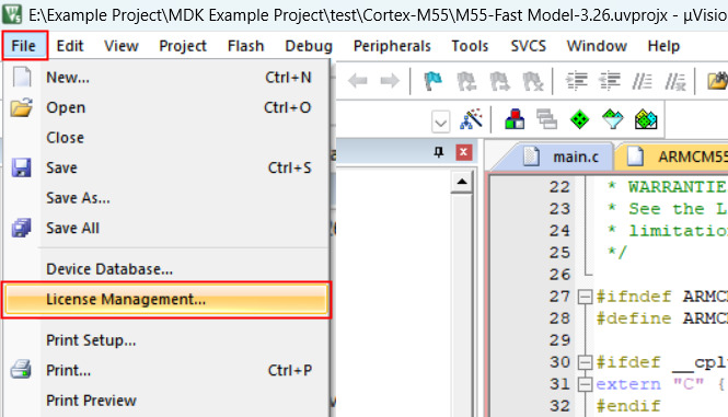 3)、打開IDE環境后,點擊“File”-->"License Management"