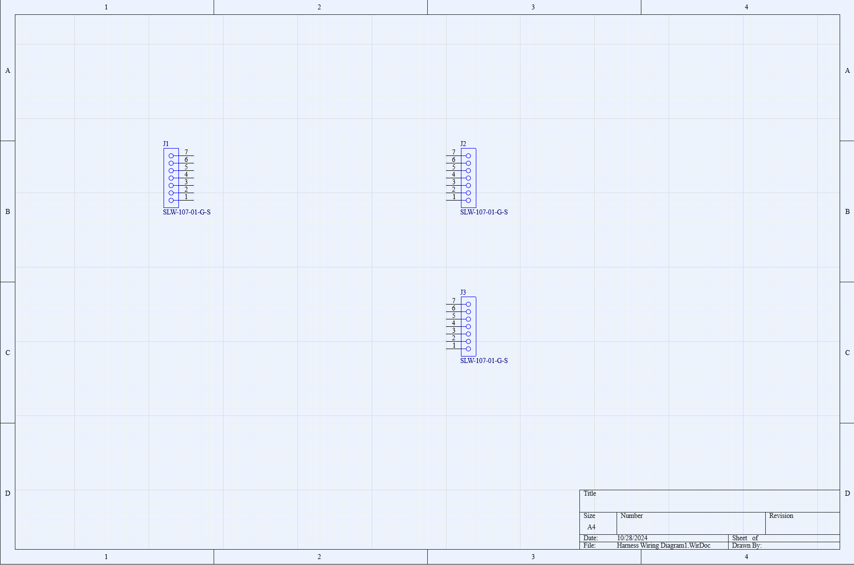 2、給創建的Harness工程添加Wiring文件(圖4-1),然后添加自己的器件庫,在Wiring上面放置器件(圖4-2),這里放了三個連接器,然后將這些連接器連接起來。