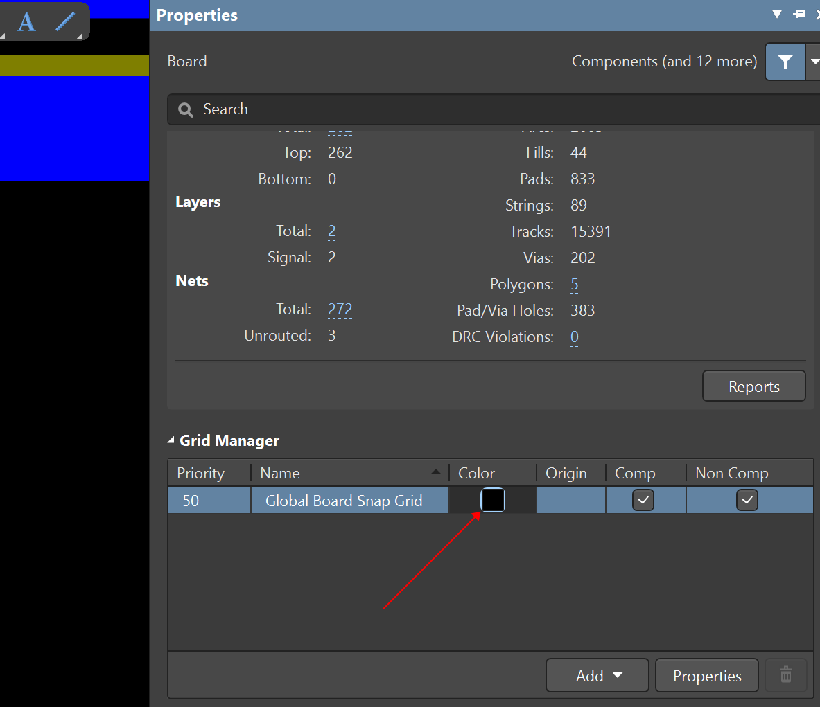 3)、在Board屬性中找到Grid Manager,查看"Non Comp"是否打勾,打勾顯示柵格,取消打勾不顯示柵格,如圖3。此處設置直接受1、2兩處影響,當1、2兩處設置為不顯示,在此處勾選了也不會顯示柵格。