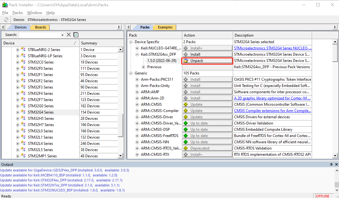 在包管理界面中,選擇要卸載的 Pack 包,(例如:STM32G4xx_DFP),并點擊 Remove,可以進行移除。