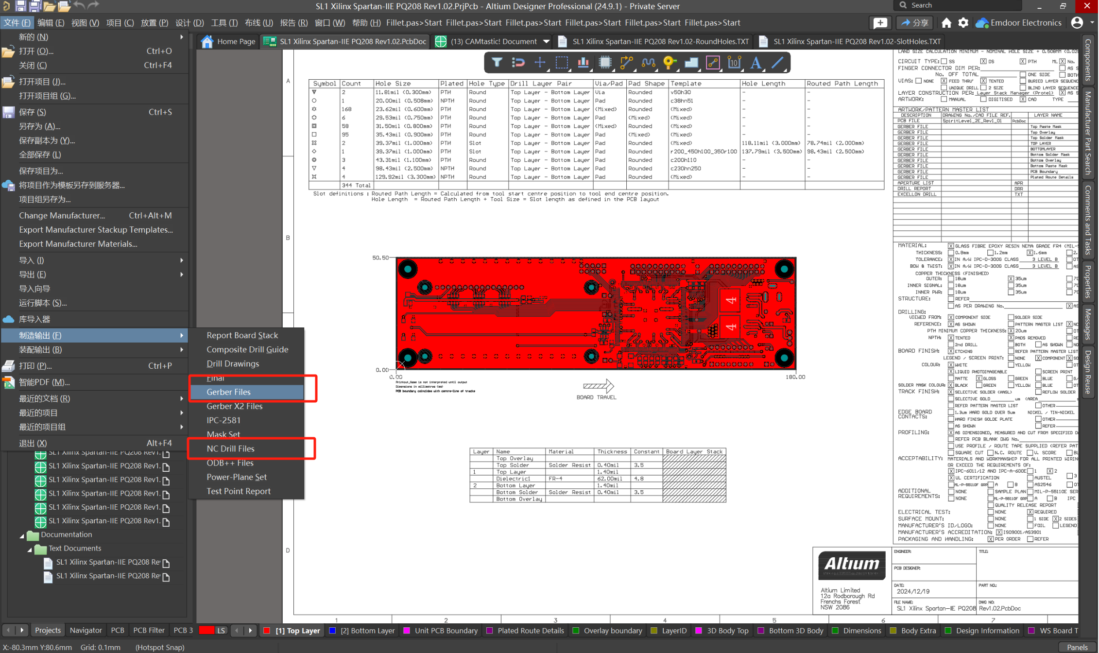 鉆孔文件的比例和Gerber文件一致,輸出完成之后如果是在工程中導出,轉換好的Gerber文件和鉆孔文件就會自動在工程下創建一個文件夾并保存。