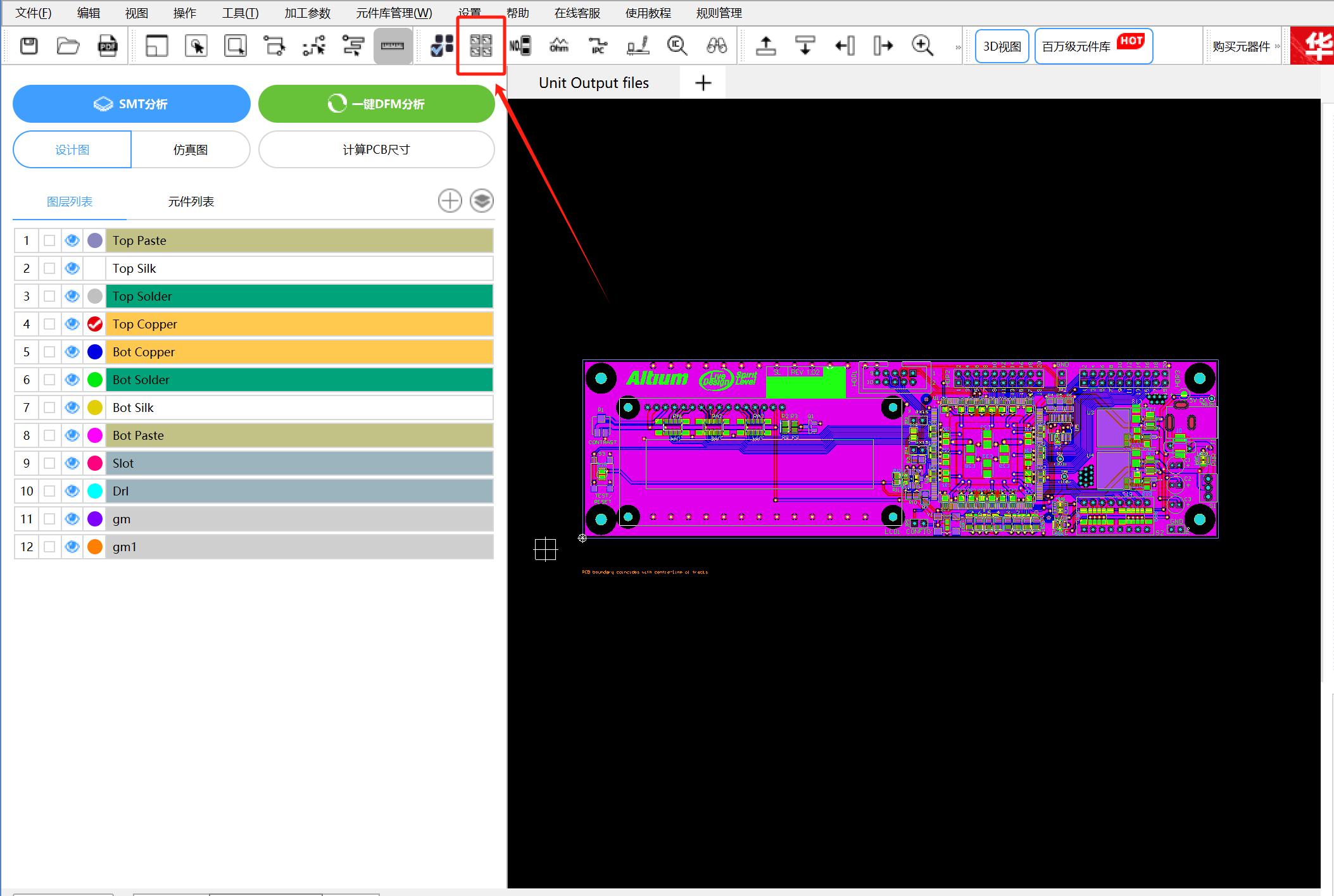 導入Gerber在軟件菜單欄有個如圖所示的圖標,點擊拼板。